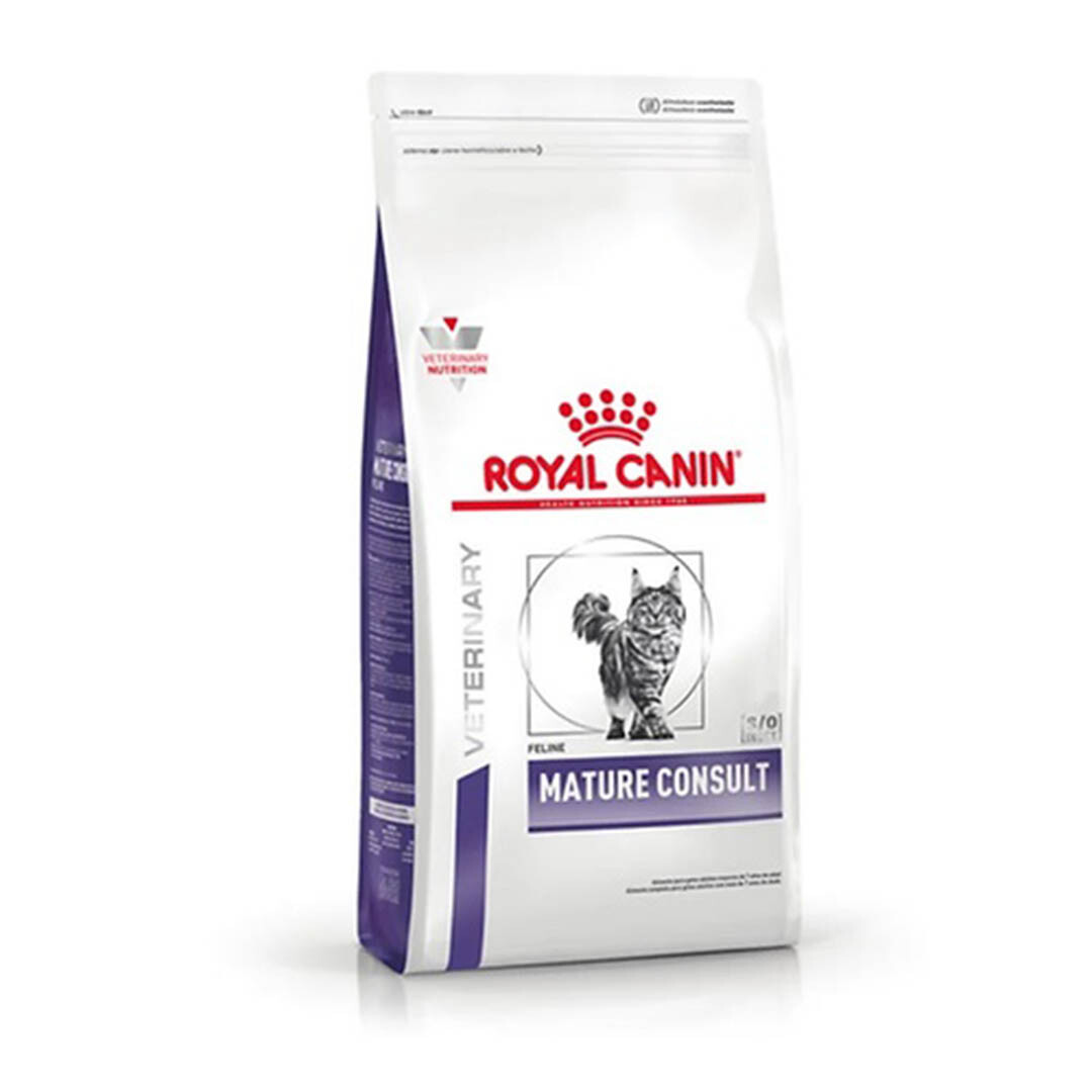 Royal Canin Mature Consult está formulado especialmente con nutrientes que favorecen la salud y el bienestar de los gatos sénior (a partir de los 7 años) sin signos evidentes de envejecimiento, pero con tendencia a aumentar de peso. Esta fórmula ofrece un equilibrio específico de nutrientes que ayuda a mantener la vitalidad en los gatos mayores. Esta fórmula contiene un alto nivel de fibras solubles e insolubles para ayudar a regular el apetito de tu gato y fomentar una sensación de saciedad después de las comidas. Está enriquecida con una mezcla específica de antioxidantes para ayudar a neutralizar los efectos de los radicales libres y a mantener los tejidos y las células. Este alimento también favorece la creación de un entorno desfavorable para la formación de cristales y cálculos urinarios. La transición de un alimento a otro a otra debe realizarse de forma lenta y gradual durante un período de 7 a 10 días. Es importante ofrecer la cantidad diaria correcta, particularmente si la alimentación es mixta. BENEFICIOS: Complejo Vitalidad La edad puede afectar los sistemas vitales de los gatos, incluida la función renal. Esta fórmula incluye una selección de nutrientes que ayudan a mantener la vitalidad. Complejo Antioxidante Enriquecido con una combinación de antioxidantes para ayudar a neutralizar los radicales libres, contribuyendo a proteger tejidos y células. Energía Óptima Contenido energético adaptado para satisfacer las necesidades de los gatos maduros activos.