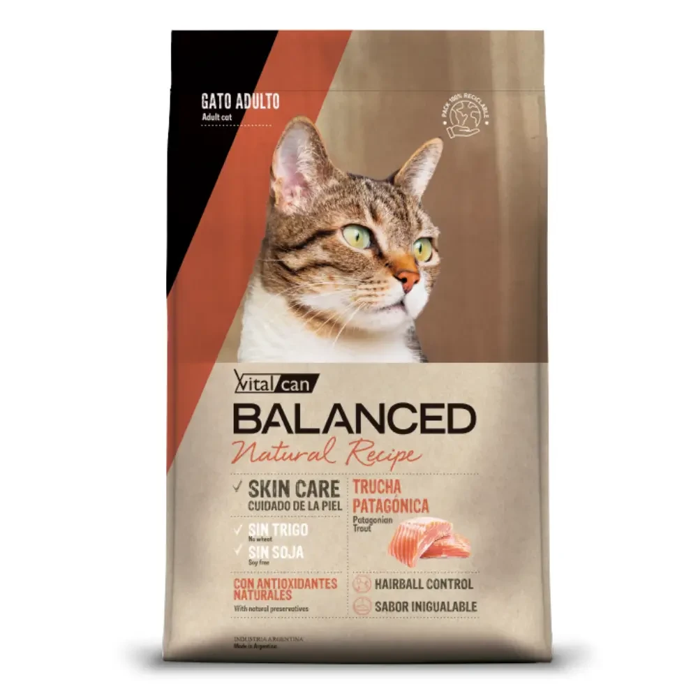 VITAL BALANCED NATURAL RECIPE TRUCHA PATAGÓNICA. Receta monoproteíca a base de trucha patagónica que contribuye a reducir las reacciones alérgicas a otras fuentes de proteína. Con ingredientes que ayudan a mejorar la condición de la piel y los signos digestivos de la intolerancia alimentaria. Características: SKIN CARE, cuidado de la piel SIN TRIGO SIN SOJA CON ANTIOXIDANTES NATURALES HAIRBALL CONTROL SABOR INIGUALABLE