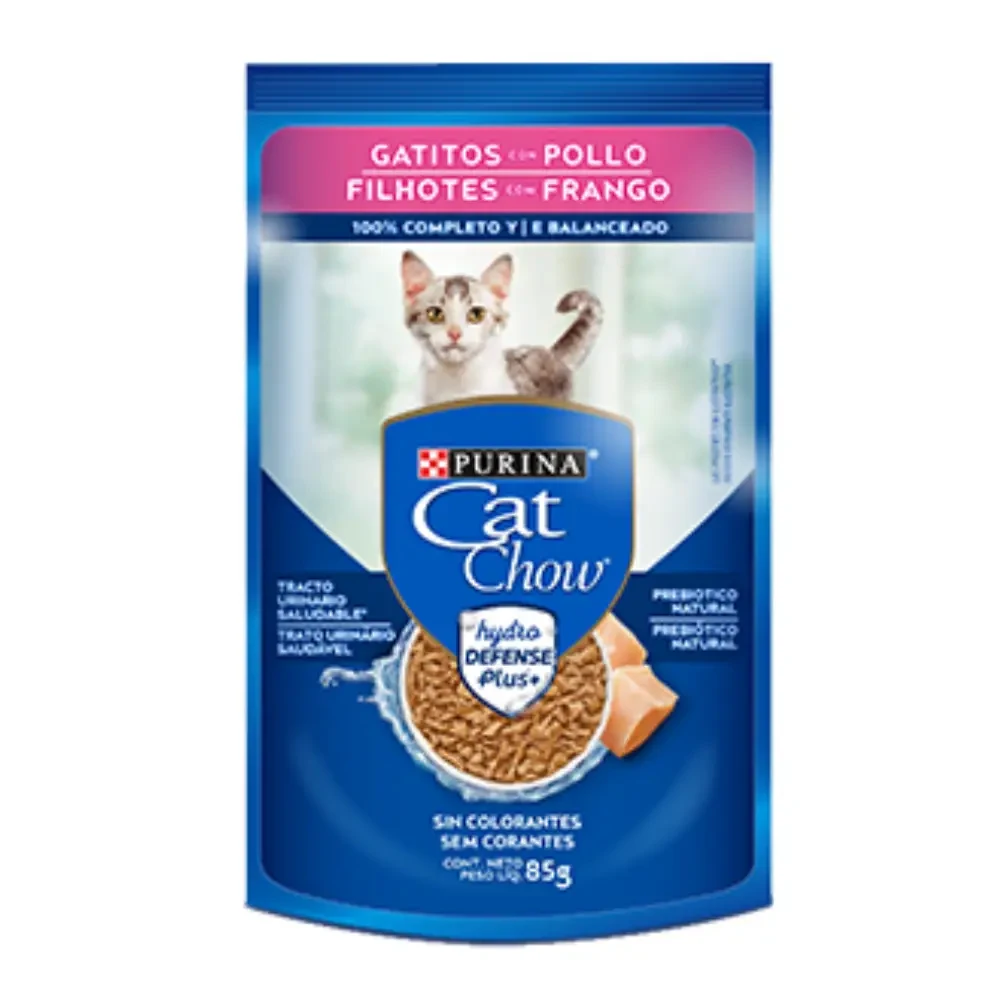PURINA® CAT CHOW® Defense Hydro® Gatitos sabor Pollo Alimento húmedo completo y balanceado para gatos en crecimiento de 1 a 12 meses de edad de todas las razas. Ayuda a proteger la salud Contribuye a un tracto urinario saludable