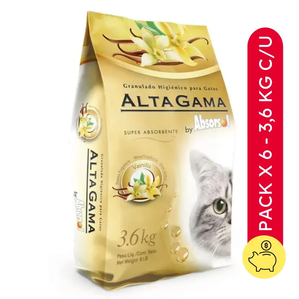 Características: Las piedritas perfumadas Alta Gama Vainilla es una opción ideal para la higiene de tu hogar. Su fórmula permite que las piedras absorban la cantidad de líquido equivalente a su peso rápidamente. Además, son livianas y porosas, facilitando su uso. No hacen barro ni se deshacen, y su perfume elimina el mal olor de las heces. Así mismo, son 100% naturales y no son tóxicas. además de ser ecológicas y reciclables. Nueva fórmula, máxima capacidad de absorción los líquidos son absorbidos por el mineral como si fuera una esponja. La composición micro porosa interna de los minerales retiene los gérmenes y bacterias. La propiedad encapsulante de Alta Gama neutraliza los olores. Higiene prolongada garantizada. Granulado higiénico para gatos Absorción Plus Calidad 100% garantizada. Modo de Uso: 1) Colocar una cama de 5 cm de granulado 2) Con una espátula retire el material usado 3) Reponga la cantidad retirada 4 ) Cada cuatro semanas renueve totalmente el granulado Presentación: Pack x 6 Bolsas de 3,6 Kg.