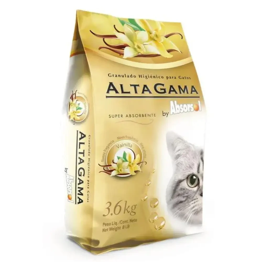Características: Las piedritas perfumadas Alta Gama Vainilla es una opción ideal para la higiene de tu hogar. Su fórmula permite que las piedras absorban la cantidad de líquido equivalente a su peso rápidamente. Además, son livianas y porosas, facilitando su uso. No hacen barro ni se deshacen, y su perfume elimina el mal olor de las heces. Así mismo, son 100% naturales y no son tóxicas. además de ser ecológicas y reciclables. Nueva fórmula, máxima capacidad de absorción los líquidos son absorbidos por el mineral como si fuera una esponja. La composición micro porosa interna de los minerales retiene los gérmenes y bacterias. La propiedad encapsulante de Alta Gama neutraliza los olores. Higiene prolongada garantizada. Granulado higiénico para gatos Absorción Plus Calidad 100% garantizada. Modo de Uso: 1) Colocar una cama de 5 cm de granulado 2) Con una espátula retire el material usado 3) Reponga la cantidad retirada 4 ) Cada cuatro semanas renueve totalmente el granulado Presentación: 1 Bolsa de 3,6 Kg.