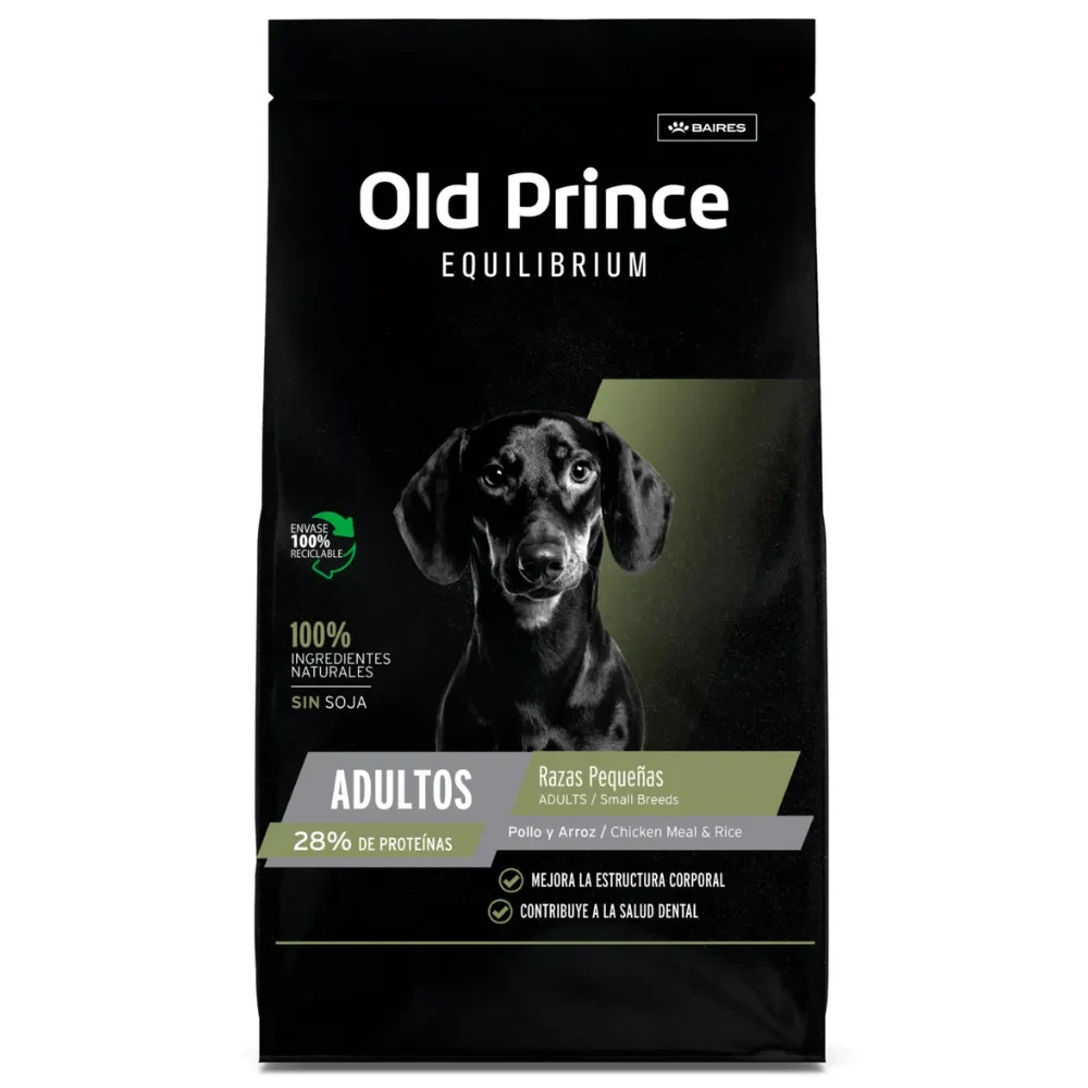 Old Prince Equilibrium Adultos Razas Pequeñas Pollo y Arroz El Alimento Old Prince Equilibrium Adulto Raza Pequeña, ofrece proteínas de calidad premium en conjunto con todos los nutrientes necesarios para que tu mascota tenga una vida saludable y con los niveles óptimos de energía. Su fórmula, ayuda a promover tanto la salud dental cómo articular de tu perro, lo que contribuye a prevenir el desarrollo de problemas de este estilo a medida que crece. Beneficios Mejora la piel y pelo de tu mascota. Ayuda a controlar el peso.