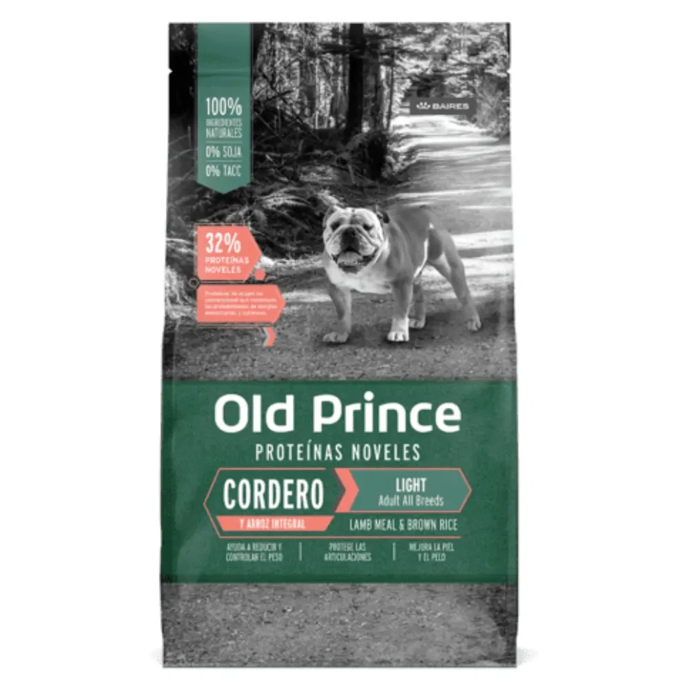 ALIMENTO BALANCEADO OLD PRINCE CORDERO LIGHT (Proteinas Noveles) Proteinas Noveles son aquellas proteinas de origen no convecional a las que los perros y gatos no han estado expuestos. * AYUDA A REDUCIR Y CONTROLAR EL PESO * PROTEGE LAS ARTICULACIONES * MEJORA LA PIEL Y EL PELO * REDUCE LA INTOLERANCIA ALIMENTARIA