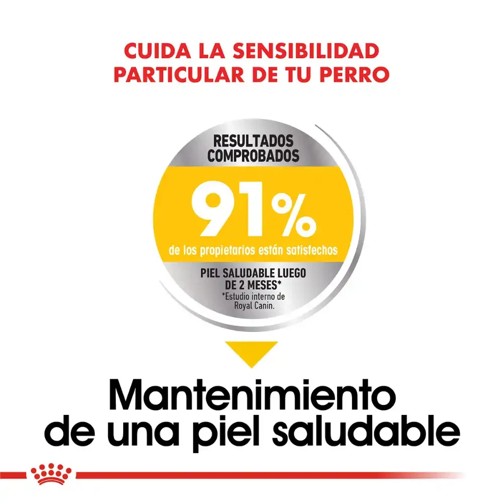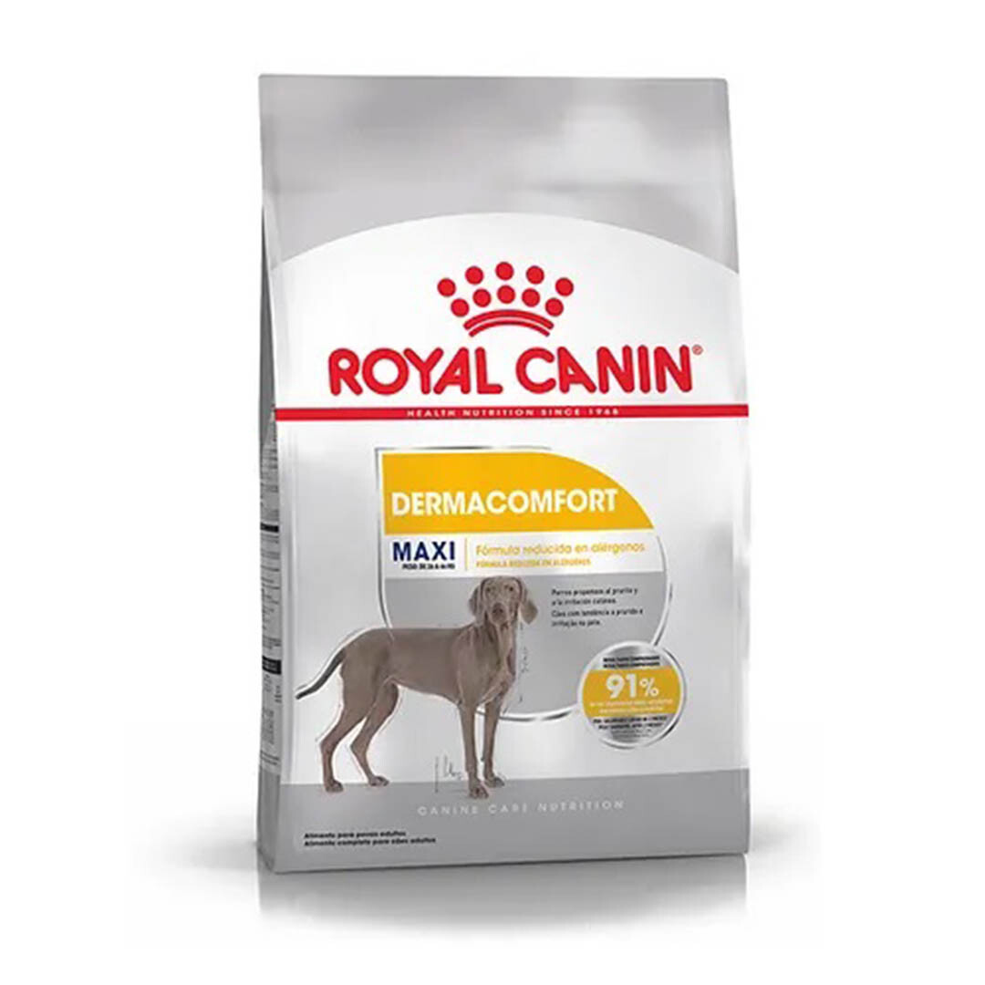 Royal Canin Maxi Dermacomfort contiene una fórmula reducida en alérgenos, ayuda a reforzar la barrera cutánea y promover una piel saludable, y colabora satisfaciendo el apetito de los perros de talla grande. BENEFICIOS: Fórmula reducida en alérgenos Formulado para ayudar a cuidar y nutrir su piel sensible, manteniendo un pelaje saludable. Resultados comprobados 91% de los propietarios están satisfechos. Piel saludable luego de 2 meses* *Estudio interno Royal Canin.