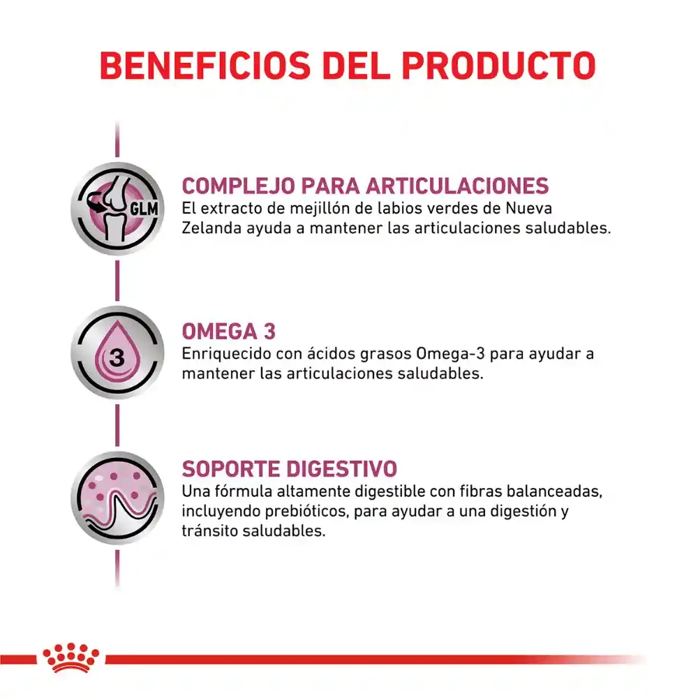 Características: Mobility Support (MS 25) MOBILITY CANINE es un alimento completo de prescripción formulado para contribuir a mantener la movilidad de las articulaciones en los perros adultos. Este alimento contiene nutrientes que ayudan a reducir los signos clínicos de inflamación articular junto con un nivel moderado de energía que contribuye a prevenir la ganancia de peso.