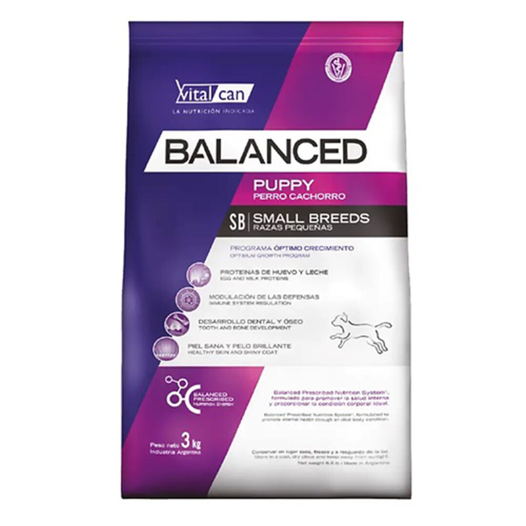VITAL CAN BALANCED CACHORRO RAZA PEQUEÑA Programa Óptimo Crecimiento. Indicado para perros cachorros de raza pequeña de hasta 12 meses de edad. Vitalcan Balanced es ideal para perros cachorros de raza pequeña porque su Programa Óptimo Crecimiento les proporciona: Proteínas de leche y huevo Modulación de defensas Desarrollo dental y óseo