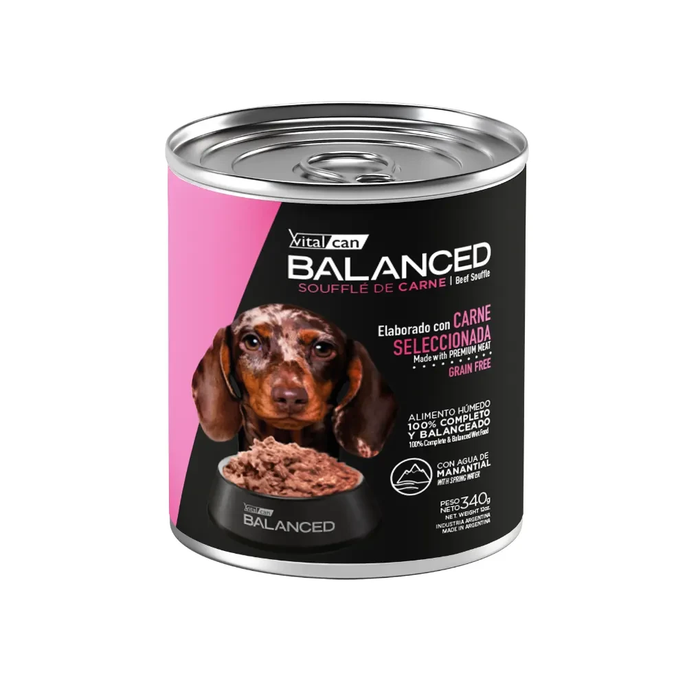 BALANCED SOUFFLE PERRO CACHORRO CARNE. La textura aireada, suave, delicada se conjuga con el sabor de diferentes propuestas de carnes de gran calidad para que el momento de comer sea más placentero. ¡Es hora de disfrutar el momento de la comida junto a ellos! CARNE VACUNA VITAMINA E CON DHA