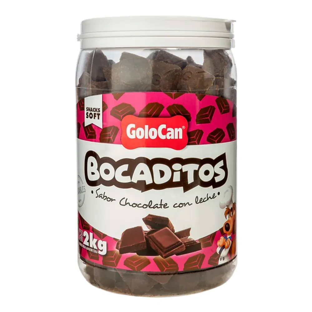 Golocan Bocaditos Chocolate x 2kg. Snacks blandos y semihúmedos que deleitarán a tu mascota con su variedad de sabores. Cada bocadito está formulado para ofrecer una textura irresistible y fácil de masticar, ideal para perros de todas las edades. Perfectos como premio o recompensa diaria, estos snacks se hornean con ingredientes de calidad que cuidan la salud de tu mascota. Beneficios Clave: Textura blanda y sabrosa, fácil de masticar. Ideales como recompensa en el entrenamiento. Tip: Perfectos para fortalecer el vínculo con tu mascota y reemplazar golosinas dulces u otros productos no recomendados para perros. Sin colorantes artificiales. Certificados por SENASA, garantía de calidad y seguridad. Aprobados para perros de todas las razas y edades, con cantidades diarias recomendadas según su tamaño. Conservación: Mantené el producto en su envase cerrado en un lugar fresco y seco. No olvides dejar siempre un recipiente con agua limpia y fresca a disposición de tu mascota.