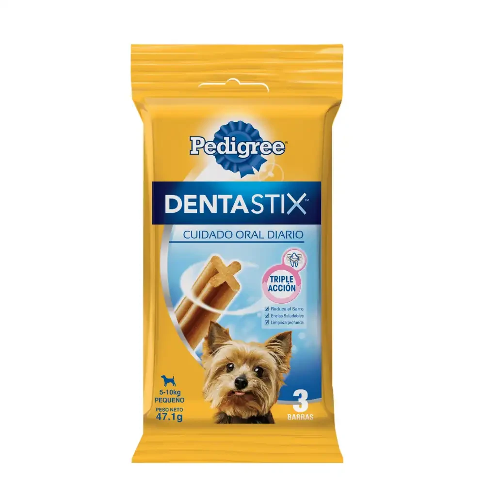 Características: Pedigree Dentastix es el primer snack del mercado pensado exclusivamente para el cuidado oral de perros de razas pequeñas. Es una solución efectiva para mantener sus dientes limpios y sanos, de forma fácil y divertida. Con un Pedigree® Dentastix™ por día, prevenís y cuidás la salud oral de tu perro gracias a su Triple Acción: 1. Reduce la formación de sarro hasta un 80%* 2. Mantiene las encías saludables gracias a sus ingredientes activos 3. Limpia dientes difíciles de alcanzar gracias a su diseño exclusivo de barra en “X”