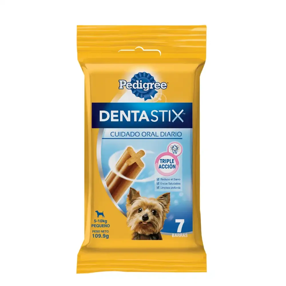 Características: Pedigree Dentastix es el primer snack del mercado pensado exclusivamente para el cuidado oral de perros de razas pequeñas. Es una solución efectiva para mantener sus dientes limpios y sanos, de forma fácil y divertida. Con un Pedigree® Dentastix™ por día, prevenís y cuidás la salud oral de tu perro gracias a su Triple Acción: 1. Reduce la formación de sarro hasta un 80%* 2. Mantiene las encías saludables gracias a sus ingredientes activos 3. Limpia dientes difíciles de alcanzar gracias a su diseño exclusivo de barra en “X”